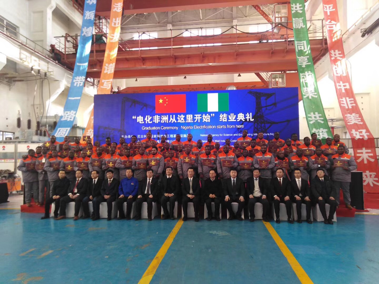 12月20日上午, “電化非洲從這里開始”尼日利亞學(xué)員培訓(xùn)結(jié)業(yè)典禮在集團(tuán)公司千山廠區(qū)變壓器裝配車間隆重舉行,這標(biāo)志首批學(xué)員圓滿完成項(xiàng)目前期學(xué)習(xí)培訓(xùn)即將載譽(yù)回國(guó)。鞍山市副市長(zhǎng)高林、中國(guó)長(zhǎng)城工業(yè)集團(tuán)有限公司副總裁張曉東、遼寧科技大學(xué)校長(zhǎng)張志強(qiáng)及華冶集團(tuán)董事長(zhǎng)馬黎明等出席了結(jié)業(yè)典禮。自今年年中尼日利亞項(xiàng)目正式啟動(dòng)后, 60名尼日利亞學(xué)員來到鞍山在我公司進(jìn)行EPC項(xiàng)目首期培訓(xùn)學(xué)習(xí),今天畢業(yè)的是首批32名學(xué)員,這批學(xué)員通過4個(gè)月的管理、技術(shù)、實(shí)操等全方位培訓(xùn),學(xué)員基本掌握了電工技術(shù)及變壓器工作基本原理及生產(chǎn)方法、工藝流程,回國(guó)后將繼續(xù)為項(xiàng)目的前期施工做準(zhǔn)備。