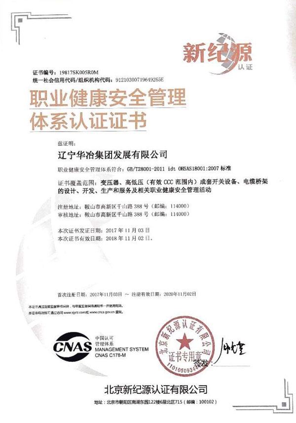 公司通過OHSAS18001職業(yè)健康安全管理體系認證
